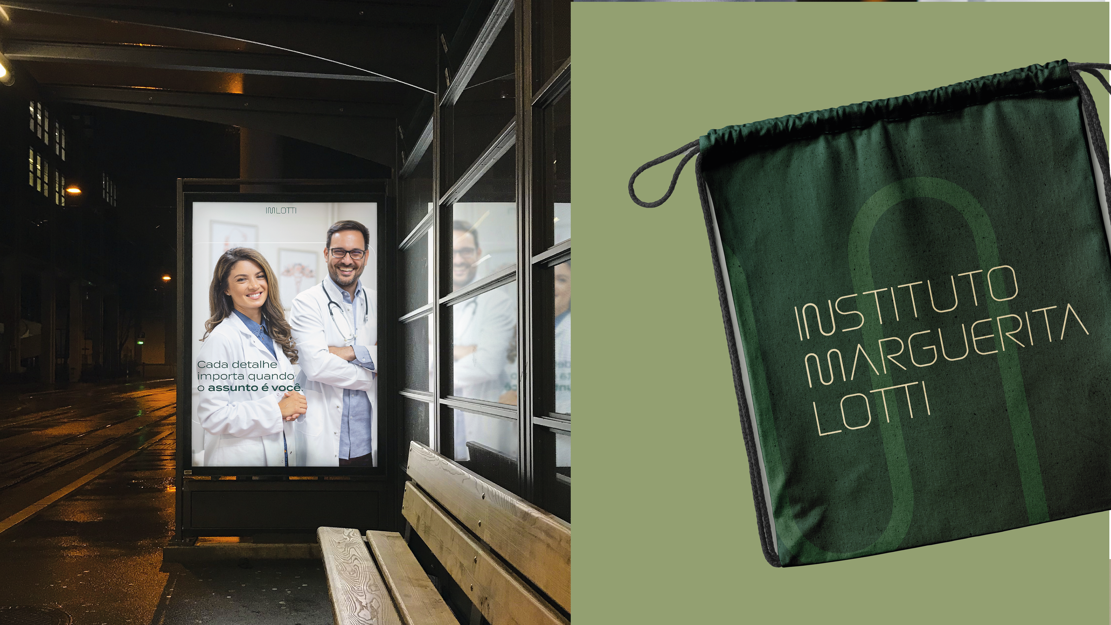 O branding do Instituto Margarida Lotti foi desenvolvido para transmitir segurança, cuidado, inovação, responsabilidade e excelência aos pacientes. Baseado na integração entre tradição e modernidade, reflete confiança e acolhimento. A paleta de cores combina tons de verde, que simbolizam saúde, com branco e bege, que trazem leveza e conforto. A tipografia clara reforça profissionalismo e acessibilidade, criando uma comunicação direta e acolhedora. Esse conjunto traduz a essência do instituto: um espaço onde tradição e inovação se unem para oferecer excelência em saúde e bem-estar.