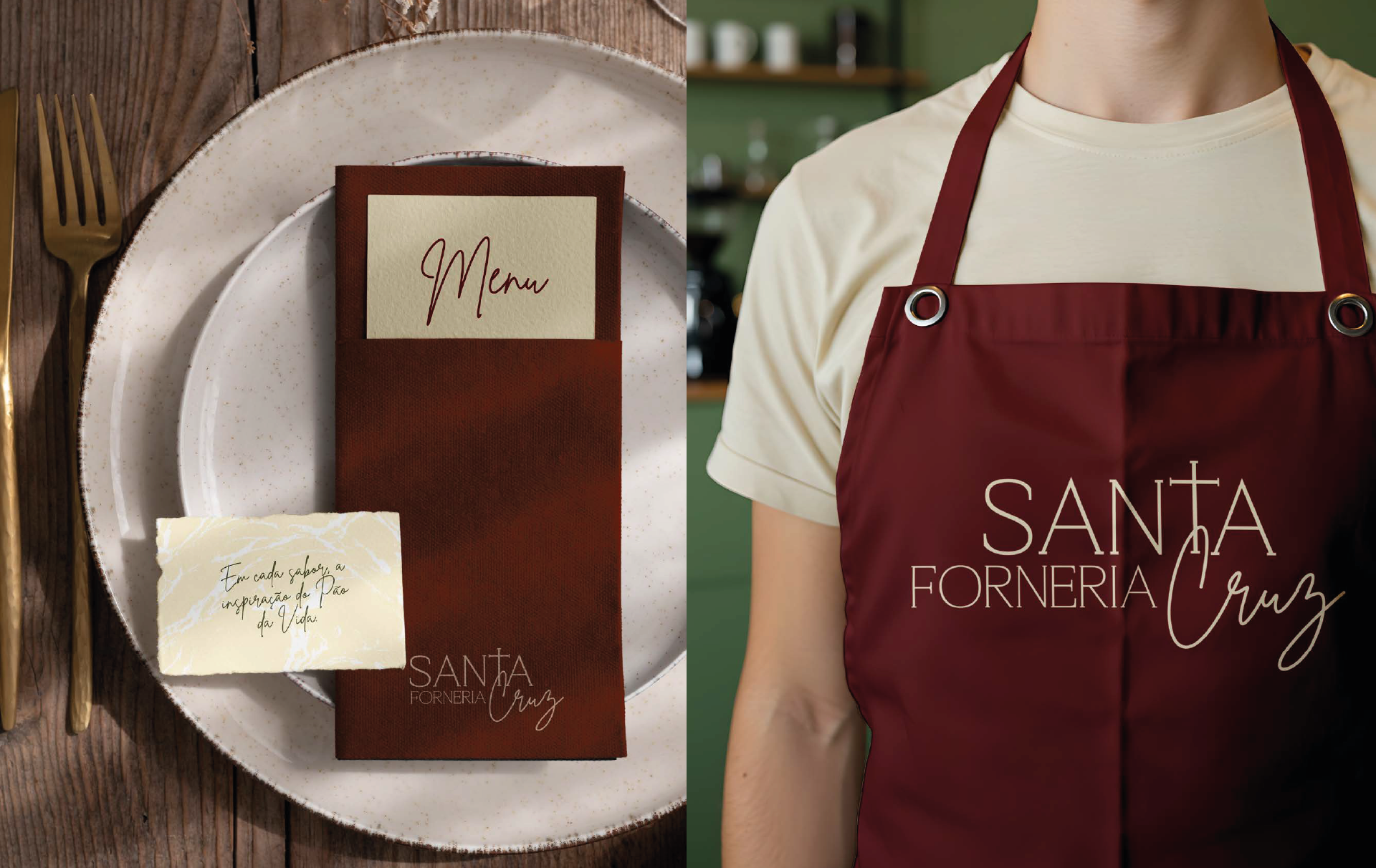 A Forneria Santa Cruz é uma marca cristã que une sabor, acolhimento e sofisticação. Inspirada em valores como saúde, excelência e autenticidade, oferece produtos artesanais e saudáveis em um ambiente acolhedor e cheio de significado. Com identidade visual que remete à natureza, fé e tradição — por meio de elementos como pão, cruz e traços orgânicos — a marca transmite confiança e carinho, conectando pessoas ao que há de mais essencial: alimentar o corpo e a alma com propósito.